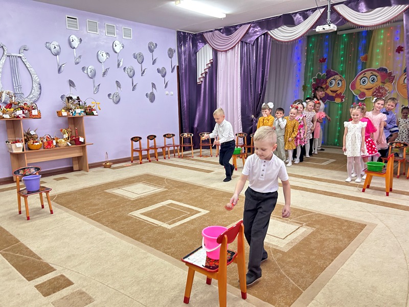 Он начался с приходом красавицы Осени. Дети для нее пели, танцевали с листочками. В гости к ребятам пришла Белочка. Вместе с детьми они весело и задорно играли и получили массу положительных эмоций.