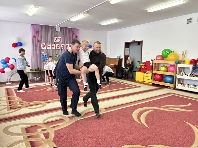 Воспитанники средней группы готовились поздравить своих пап. С целью формирования и воспитания любви, ласкового, чуткого отношения к папе, чувства гордости за своего отца. Были проведены беседа, участие в онлайн-акции «Папа в кадре», сюжетно-ролевые игры.