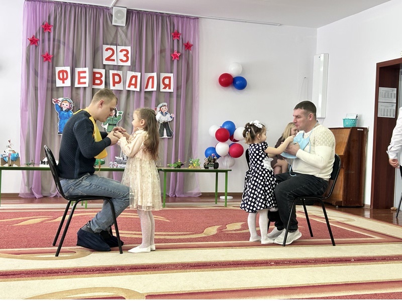 Гостями и участниками эстафетных соревнований стали папы. После веселой разминки команды "Сильных", "Ловких", "Смелых" вышли на старт. Команды прошли нешуточные испытания на ловкость в обращении с теннисным мячом, передаче детского мяча над головой, прокатывании мяча ногами, в хоккей с мячом, забрасывании мяча в кольцо, передвижении на мяче-фитболе. Старание и внимание, задор и звонкий смех участников обеспечили успех соревнования. Команды на деле доказали право называться "Сильными", "Ловкими", "Смелыми".