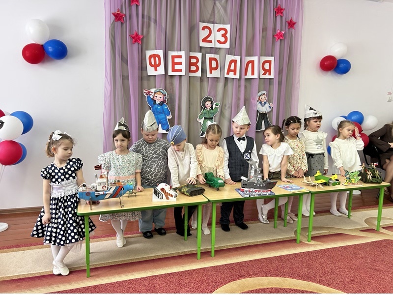 Каждый год в конце зимы, 23 февраля, наша страна отмечает праздник – День защитника Отечества. Это праздник доблести, мужества, чести и любви к Родине. Это праздник настоящих мужчин — смелых и отважных, ловких и надёжных, а также праздник мальчиков, которые вырастут и станут защитниками Отечества. В нашей группе прошло мероприятие «Армейский день», где дошколята узнали, чем занимаются настоящие защитники Отечества. В гости к детям пришли папы и дедушки. Ребята играли в игры «Построение», «Летчики, пилоты», «Накорми папу завтраком», «Рассортируй овощи и фрукты». Отгадывали загадки на армейскую тематику, вспомнили пословицы и поговорки о солдатской еде. Папы поделились своим мастерством по изготовлению настоящих солдатских пилоток. Праздник продолжился парадом военной техники. Сделанные своими руками самолёты, танки, корабли стали гордостью детей и их семей. В заключение славного армейского дня дети вручили папам и дедушкам памятные подарки.