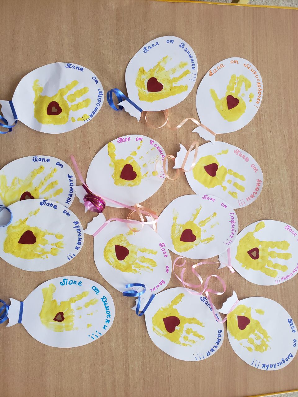 Ну а детки подарили мамочкам поделки, сделанные совместно с воспитателем, отпечатки ладошки.