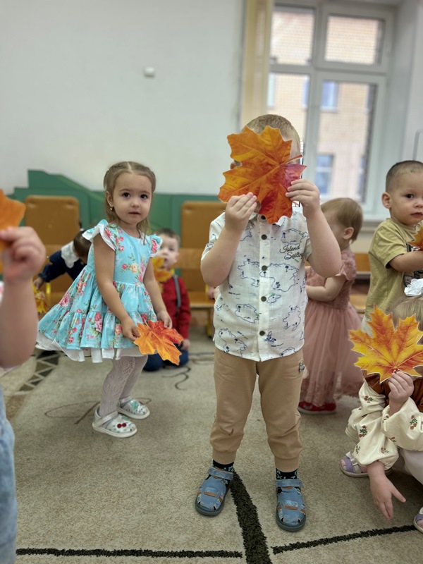 Вот и наступила золотая осень - самая красивая пора года! Осень любит жёлтые, красные, оранжевые краски. В такое прекрасное время года у самых маленьких воспитанников прошло осеннее развлечение "Осень милая, шурши!". Малыши радовались яркому украшению группы. К ним в гости пришла красавица Осень, весело кружась, рассыпала листья из корзины. Дети очень обрадовались её появлению. Вместе с ней они станцевали танец с разноцветными листочками, спели песню про дождик, поиграли в весёлые игры "Собери листья", "Солнышко и дождик" Праздник прошёл интересно и весело. В конце малышей ждал сладкий сюрприз. Какой же праздник без угощения? Наши воспитанники остались довольны первым праздником в детском саду!
