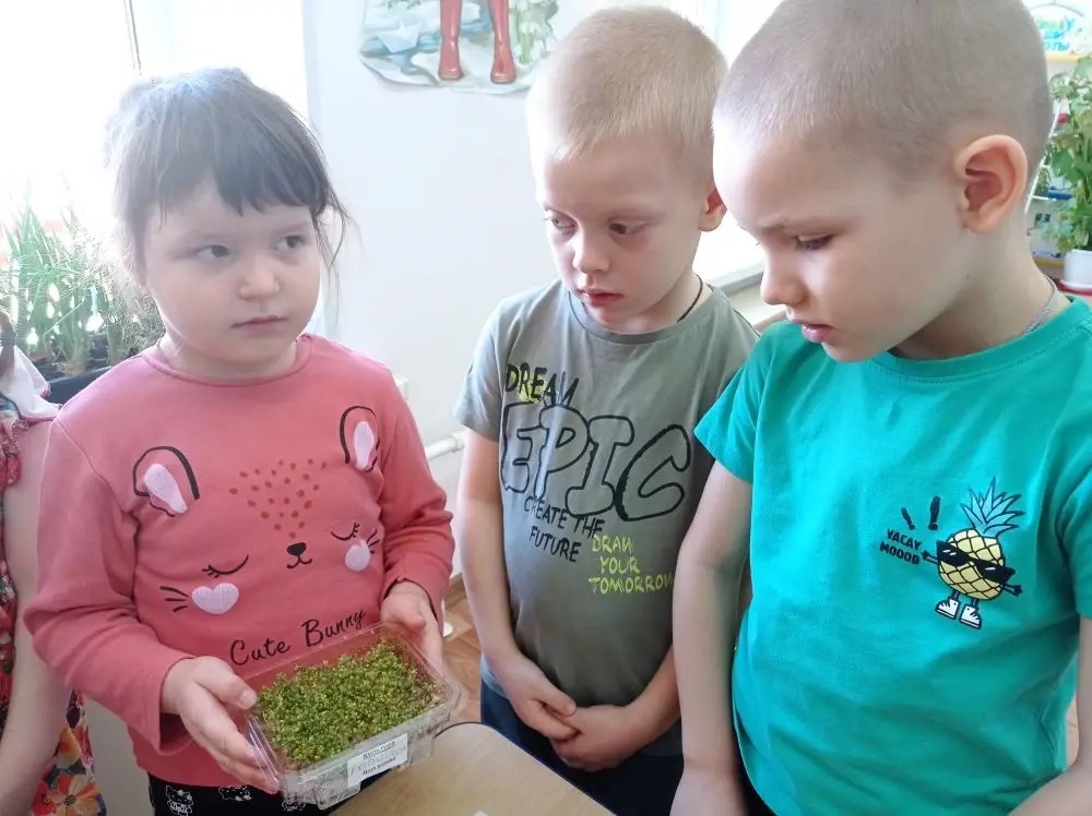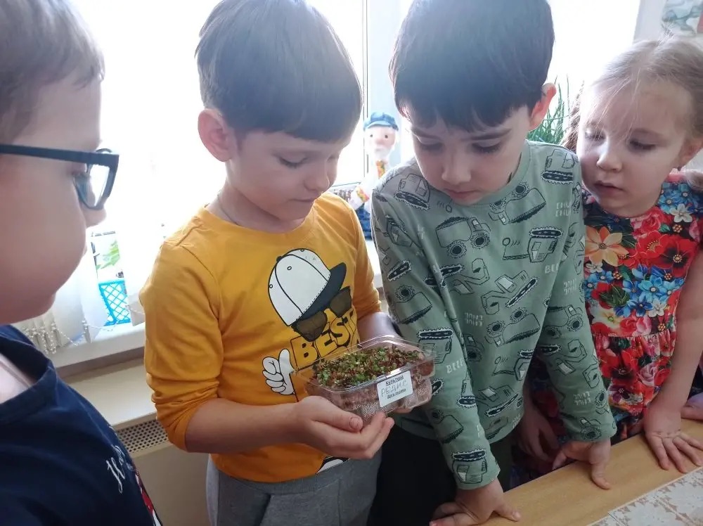 Каждый день мы поливаем, наблюдаем, ка растет.