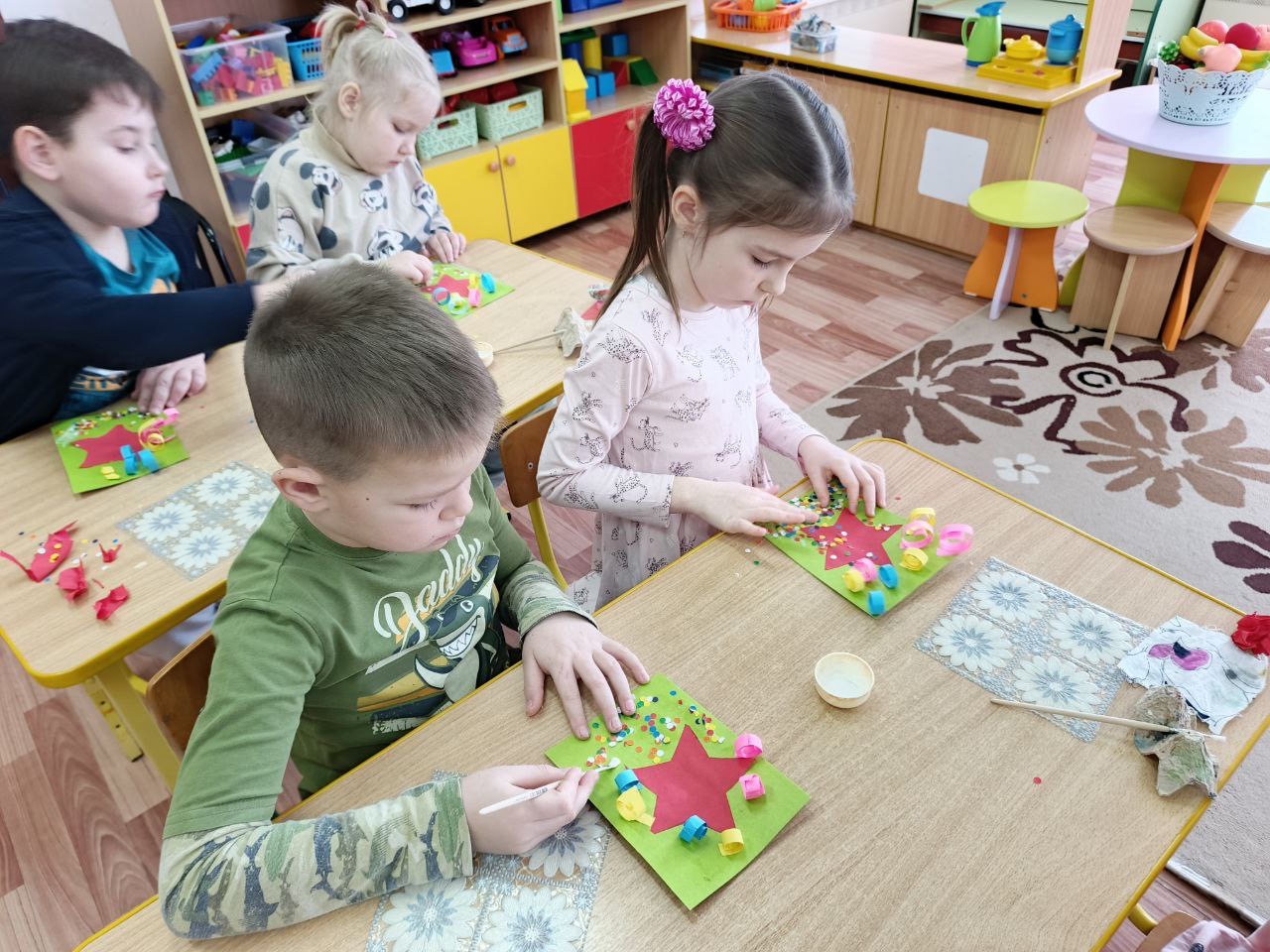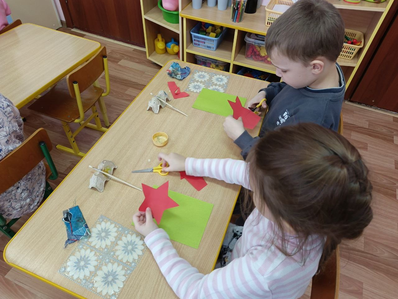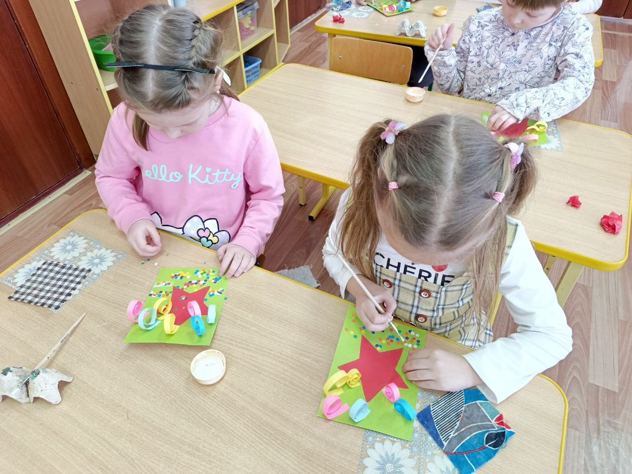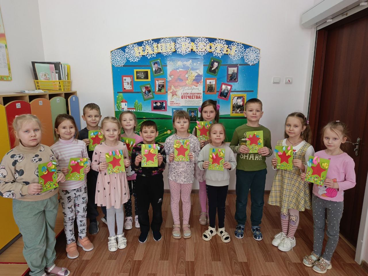 В преддверии всенародного праздника в нашей группе была организована творческая мастерская по изготовлению открыток к 23 февраля.