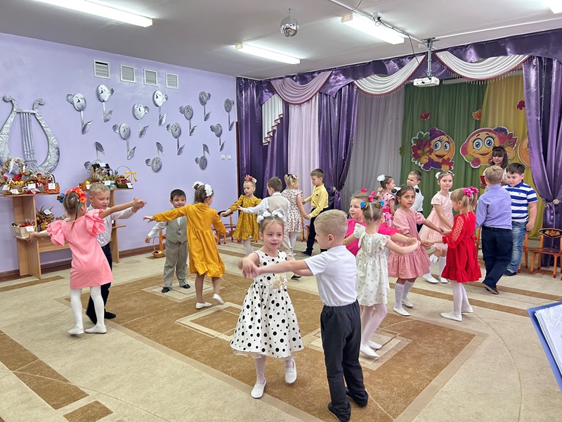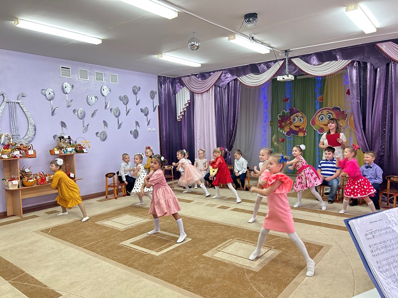 Он начался с приходом красавицы Осени. Дети для нее пели, танцевали с листочками. В гости к ребятам пришла Белочка. Вместе с детьми они весело и задорно играли и получили массу положительных эмоций.