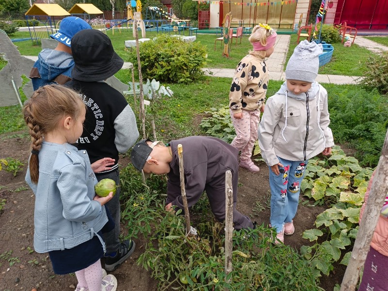 В течение лета ребята ухаживали за ними, поливали, пололи, наблюдали за появлением первых цветочков и плодов. И вот пришла замечательная пора сбора урожая.