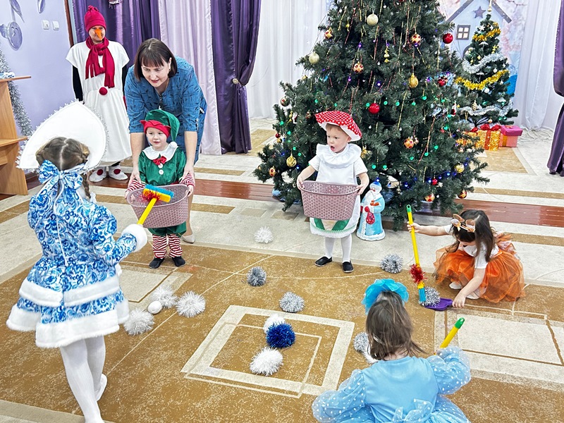 В младшей группе прошло незабываемое новогоднее развлечение "Магазин Снеговика", подарившее детям море радости. Мероприятие началось с веселых хороводов вокруг нарядной елки и задорной игры "Подмети снежки".
