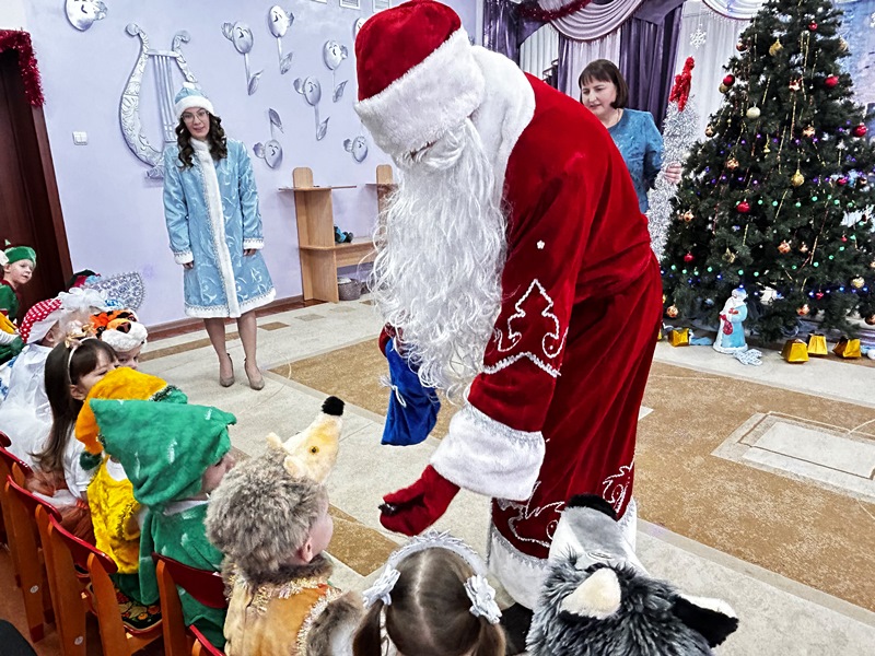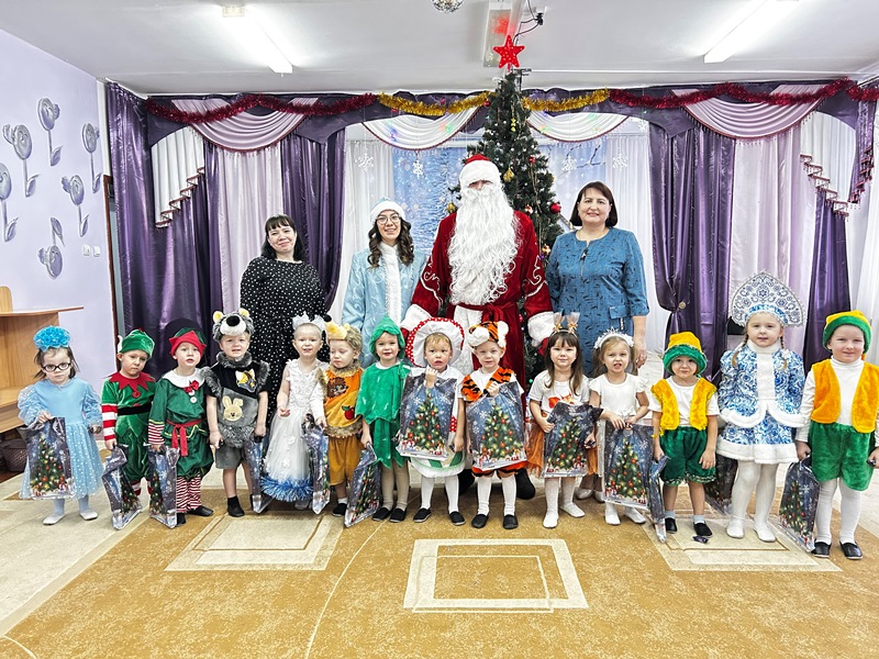Вместе водили хороводы вокруг елочки, активно участвовали в играх. И в награду получили сладкие подарки от Дедушки Мороза.