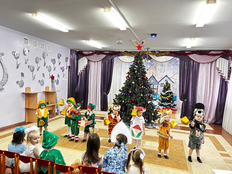 Ребята с удовольствием водили хороводы, пели полюбившие песни, танцевали. А елка радовала деток сверкающими огоньками. Праздник для дошколят получился веселым и интересным.
