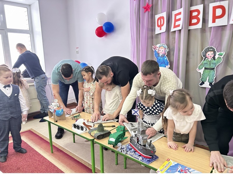 Каждый год в конце зимы, 23 февраля, наша страна отмечает праздник – День защитника Отечества. Это праздник доблести, мужества, чести и любви к Родине. Это праздник настоящих мужчин — смелых и отважных, ловких и надёжных, а также праздник мальчиков, которые вырастут и станут защитниками Отечества. В нашей группе прошло мероприятие «Армейский день», где дошколята узнали, чем занимаются настоящие защитники Отечества. В гости к детям пришли папы и дедушки. Ребята играли в игры «Построение», «Летчики, пилоты», «Накорми папу завтраком», «Рассортируй овощи и фрукты». Отгадывали загадки на армейскую тематику, вспомнили пословицы и поговорки о солдатской еде. Папы поделились своим мастерством по изготовлению настоящих солдатских пилоток. Праздник продолжился парадом военной техники. Сделанные своими руками самолёты, танки, корабли стали гордостью детей и их семей. В заключение славного армейского дня дети вручили папам и дедушкам памятные подарки.
