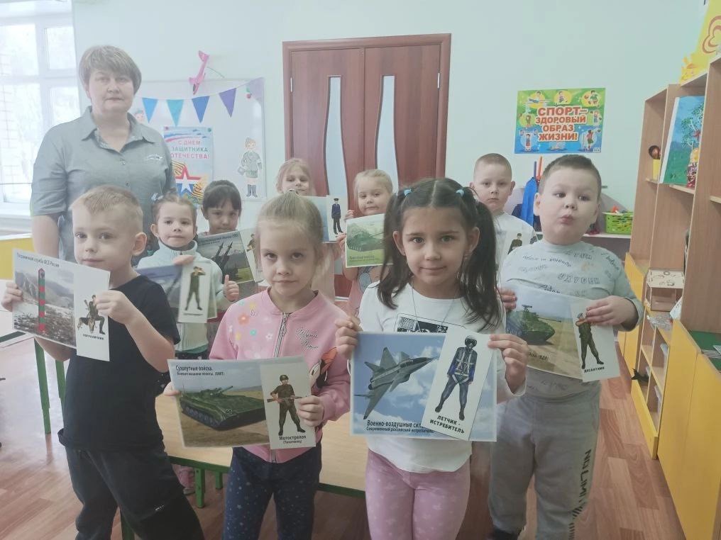 Образовательная деятельность по познавательному развитию «Российская армия» расширила знания детей о трудной, но почетной обязанности защищать Родину, охранять её спокойствие и безопасность. Дошколята играли в игру «Закончи предложение», «Кому что нужно», «Российская армия». Отгадывали загадки о военных профессиях. В заключении отметили, что воин российский охраняет мирное море, мирное небо, мир на земле.