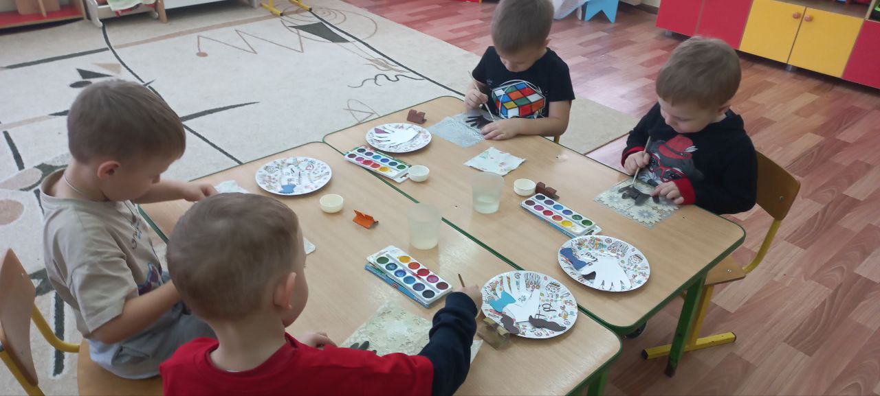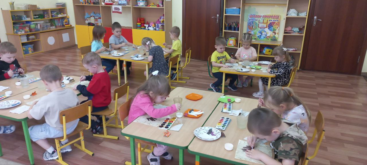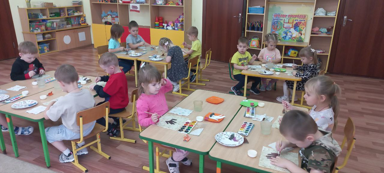 В предверии праздника в группе проводили беседы о Родине, читали стихи, рассматривали картины о родной природе. На занятии по аппликации дошкольники изготавливали поделки, их они с удовольствием подарили своим близким.