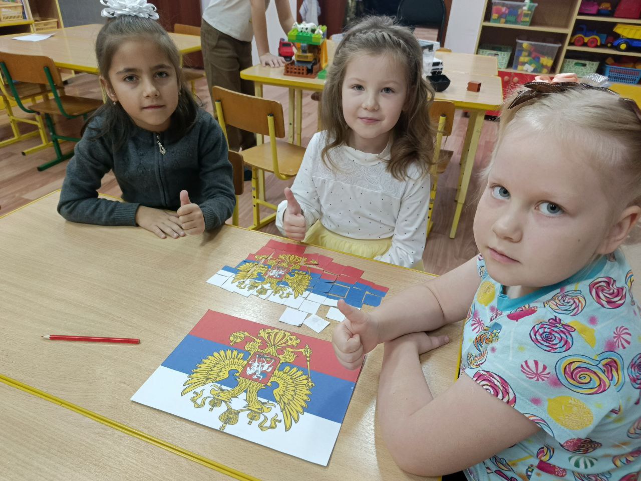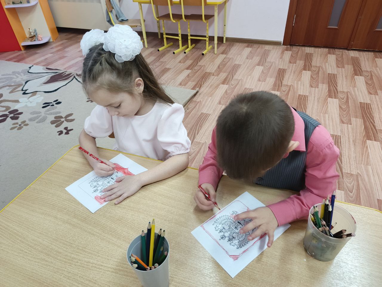 С ребятами подготовительной группы прошли беседы на темы: "День герба РФ"; "Один герб - одна Россия". Дошкольники вспомнили историю появления Государственного герба и его значимости для нашего государства; поиграли в дидактические игры "Составь герб"; "Где можно увидеть герб России? ". Ребята проявили творчество в продуктивной деятельности, раскрасили герб нашей Родины России.