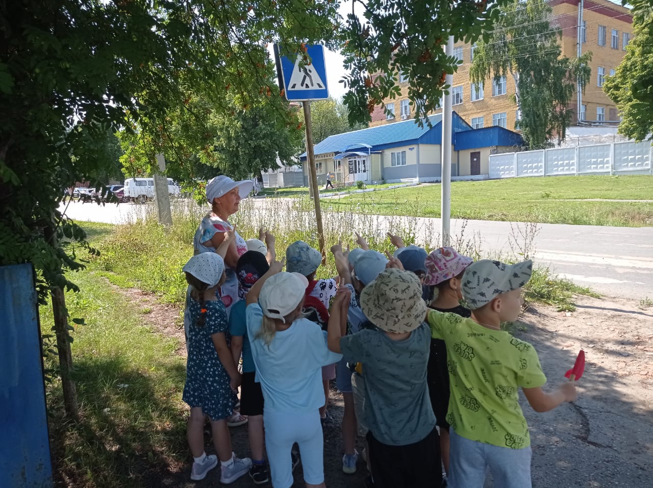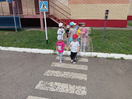 В рамках недели "Безопасное лето - счастливое детсво!" воспитанники старших групп сходили на экскурсию к близлежащему свтофору и перекрестку улиц. Дети с большим интересом наблюдали за работой светофора и сами подробно рассказали, что нужно делать на каждый цветовой сигнал. Ребята узнали, что перекресток, где есть светофор, называется регулируемым. Увидели, какое оживленное и опасное место - перекресток. Также познакомились с указательными и запрещающими дорожными знаками. У детей появилась культура поведения на улице и выработалась потребность в соблюдении правил дорожного движения.