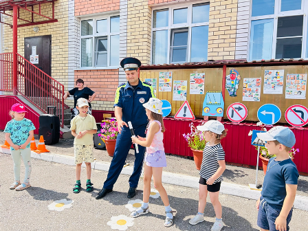 Чтобы уберечь ребёнка от несчастных случаев в различных ситуациях, необходимо научить его безопасному поведению. В нашем детском саду, в этом направлении ведётся большая планомерная работа. Сегодня прошло мероприятие посвящённое правилам дорожного движения и безопасности. Дети в игровой форме закрепили знание дорожных знаков, сигналов светофора, побывали пешеходами, пассажирами и водителями. Особый восторг у дошкольников вызвал осмотр машины ДПС, с присутствующими на празднике, представителями ГИБДД, включение сирены, звуковых сигналов, примерка шлема. Праздник никого не оставил равнодушным, каждый ребёнок получил массу положительных эмоций и эмблему "Знаток правил дорожного движения".
