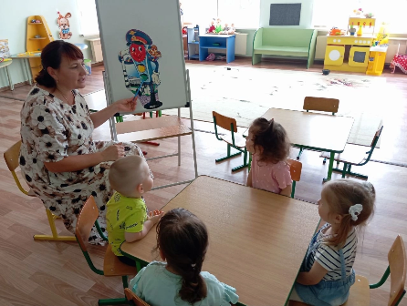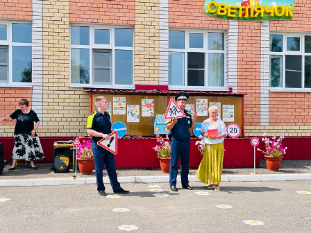 В рамках тематической недели по безопасности в нашем детском саду прошло мероприятие "В поисках сигналов светофора". На мероприятии присутствовали гости: юристконсультант МО МВД России "Алатырский" капитан внутренней службы Светлана Александровна Мартынова и инспектор ОГИБДД МО МВД России "Алатырский" младший лейтенант полиции Зямкин Вячеслав Николаевич.