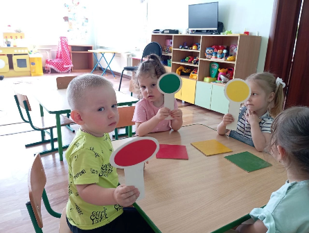 В гости к детям пришел Светофор Светофорович и обратился с просьбой о помощи: найти сигналы светофора. Ребята с удовольствием откликнулись на его просьбу.